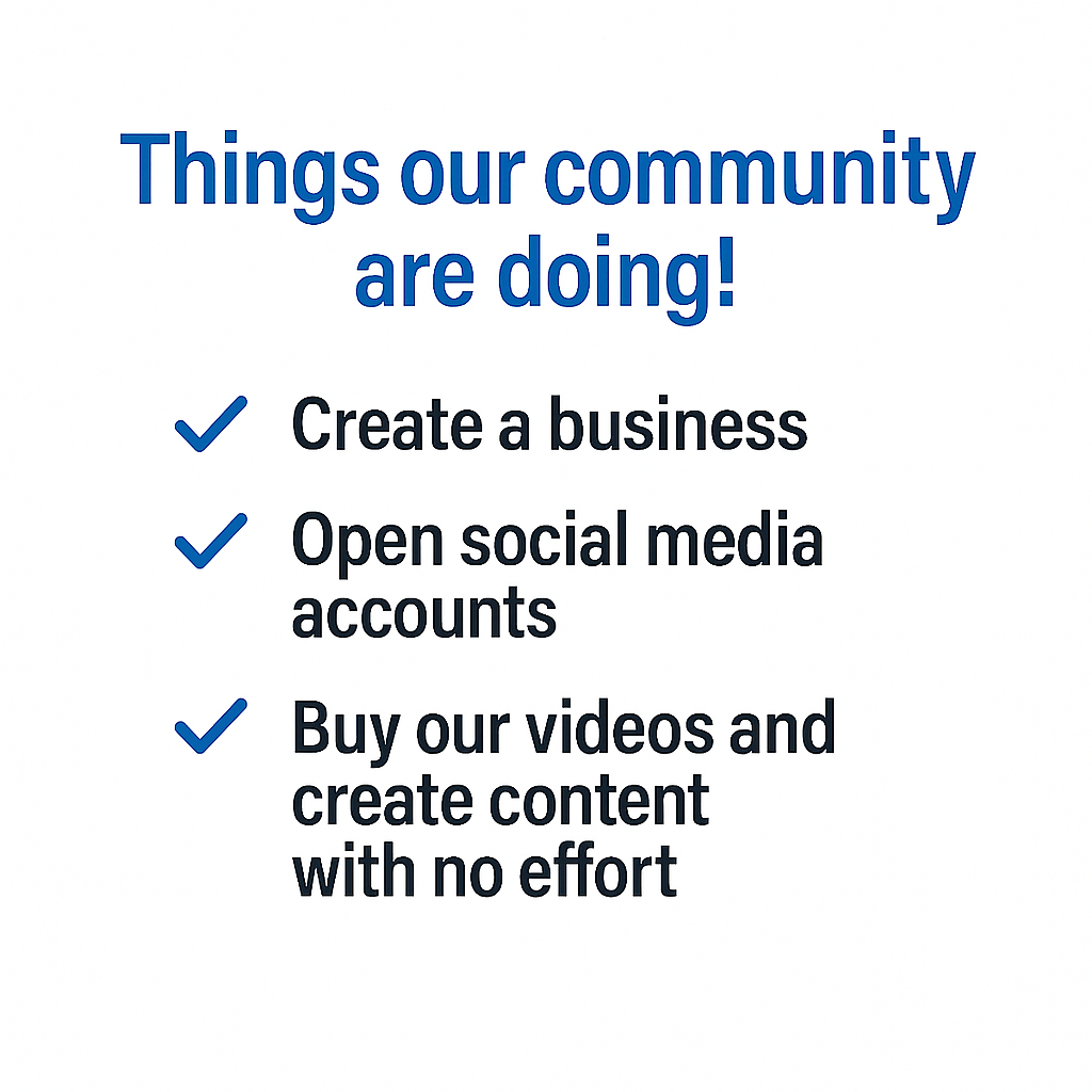 Our community is already turning ideas into reality: launching businesses, opening social media accounts, and creating viral content effortlessly with our ready-to-use videos. With LoomsyHub, you don’t just get resources — you get the tools to grow, stand out, and succeed online.